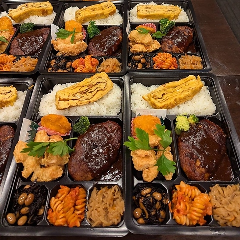 - ご注文は3日前までにお電話にてご連絡ください。 ※副菜は仕入れによって変わる場合があります。請求書の送付を行っております。(法人様に限り口座振り込みも可) ※お弁当は要相談で6個~承ります。詳細は店舗まで