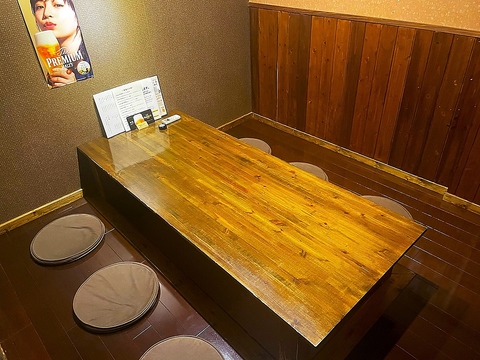 掘りごたつなので疲れずゆったりくつろげます。ゆったり宴会出来る参場火(さんばか)で楽しみましょう!