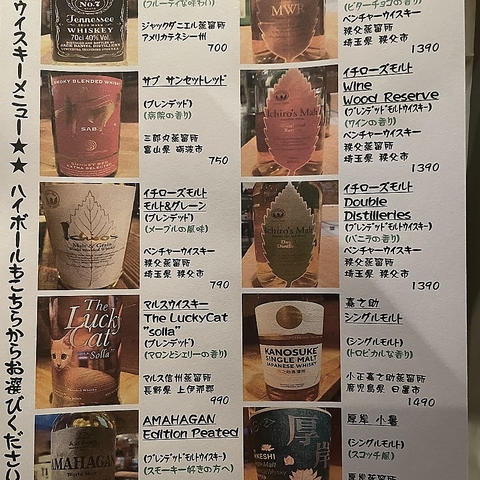 | 梅酒 | ロック、水割り、ソーダ割り、お湯割り |