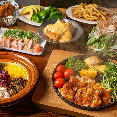 看板商品の”地鶏の炭火焼”を中心に、焼鳥や旬のおつまみ、ユーモアあるお料理をご用意しております。
