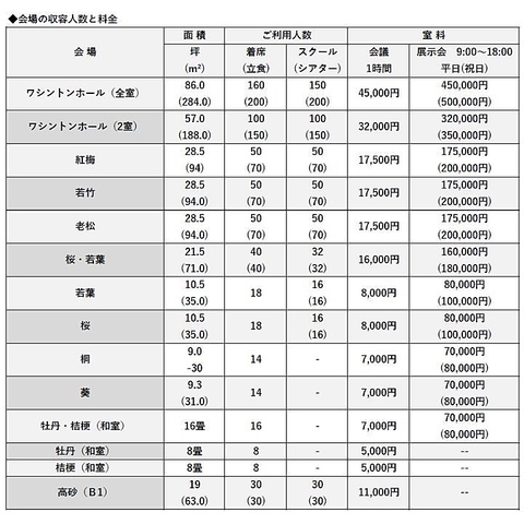 | 貸切 | 貸切不可 :詳細はお問い合わせください。 |