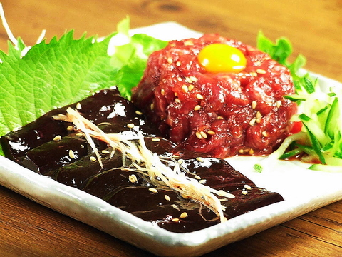 大人気!!桜肉のユッケ&レバ刺しはビールとの相性も抜群♪※