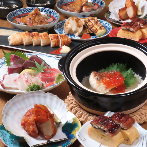 新鮮な海の幸を贅沢に使用したお刺身や焼き物に、旨みを引き出した季節野菜を添えてご提供。締めには当店自慢の土鍋ご飯をご用意。海鮮の華やかさと土鍋の温もりを一度に味わえる、特別なコースです