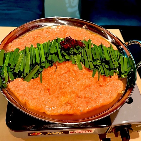 明太とろろをふんだんに使った博多本場のモツ鍋です