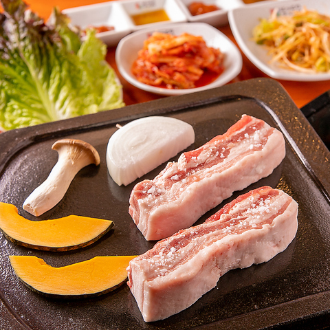 ボリューム満点!選べる韓国お肉コースサムギョプサル、チーズタッカルビ、ポッサムからお好きなメインをチョイス。さらに、ジューシーな韓国チキンも楽しめる贅沢なコースです。新鮮な野菜で包んで味わうサムギョプサル、トロ~リチーズがたまらないタッカルビ、柔らかく蒸しあげたポッサム・・・どれも旨みがぎゅっと詰まった逸品。