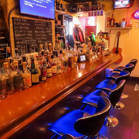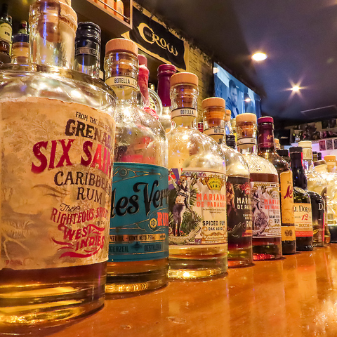ラム酒を中心にお酒の種類が豊富。150種近くのアルコールを多彩に取り揃え。