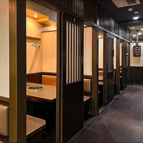 【個室完備】周りを気にせずにお楽しみいただける空間が嬉しい!さらに掘りごたつなので、足を延ばしてゆったり♪ご家族と、友人と、デートで、様々なシーンでご活用いただけます。大切な方と素敵な時間を過ごしませんか?落ち着いた空間で、上質な国産牛を存分にご堪能下さい!焼肉/個室/宴会/デート/記念日/歓送迎会/