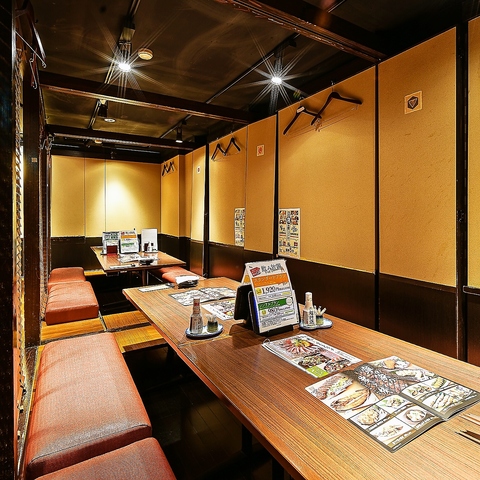 大人数での宴会に最適な居酒屋として、広々としたテーブル席をご用意。飲み放題付きコースも充実しており、個室の利用も可能です。設備や環境が整っているので、幹事様が安心してご予約いただけます。