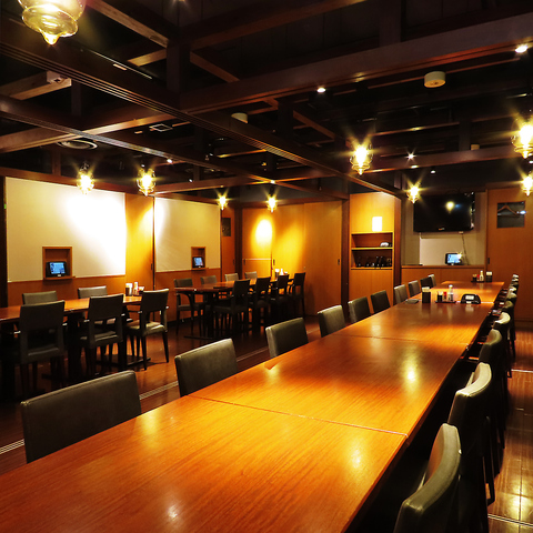 大人数での宴会に最適な居酒屋として、広々としたテーブル席をご用意。飲み放題付きコースも充実しており、個室の利用も可能です。設備や環境が整っているので、幹事様が安心してご予約いただけます。