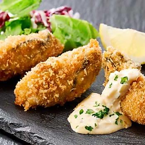 広島産牡蠣を使用した大粒牡蠣でカキフライ、フリッターも是非とも食べてみてください。