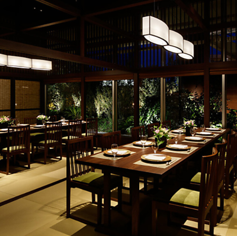 | 個室 | 10名様×2 | 10名様でご利用いただける個室もご用意しております。細部まで手入れの行き届いたお部屋は、心が安らぐような悠々とした時間の流れを感じさせます。2つの個室を繋げることで20名様までのご会食に対応可能となっております。 |