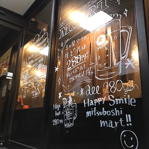 なんて言っても生ビール328円(税込)角ハイボールだって328円(税込)!!コスパの高い三ツ星マートはどんなシーンにも対応!!浴びるほど飲みたいお客様にはご好評の【2h飲み放題】もOK!当日でも受け付けてますよ♪