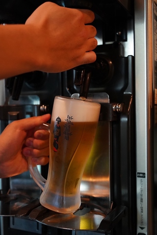 定期的にメンテナンスをしているからこそ、安心の美味しさ!舞妓さんのビールジョッキがかわいらしく、美味しさを引き立てます。