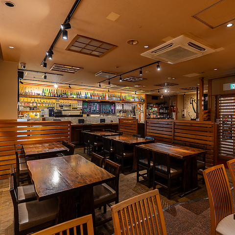 木目調のレトロモダンな店内で、気の合う仲間同士の集まりから会食・接待にも