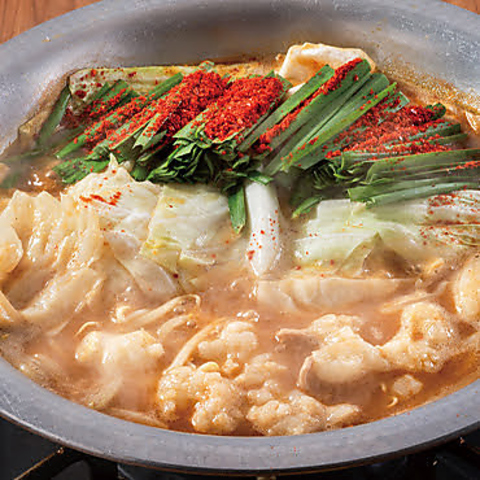 脂の乗った牛ホルモン、素材の良さを味わっていただくために塩味のもつ鍋をご用意しました!シンプルなスープにしみ出すホルモンと野菜の旨味、濃厚なのにあっさりとした後口が極上品質の証。〆の麺で最後の一滴までお召し上がりください!