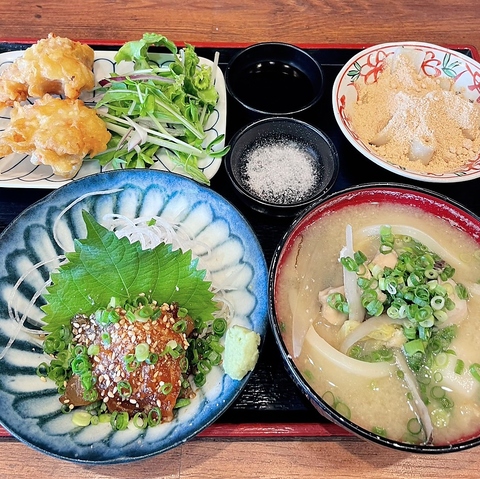 大分の美味しいものをちょこっとずつ集めた大分よくばりセットをご用意!地元で獲れた魚の切身を特製ダレとゴマ等を合わせた大分の郷土料理、【りゅうきゅう】。大分と言えば鶏肉。唐揚げと並ぶ2大勢力の【とり天】。ごろごろ野菜と地元の味噌を使った【だんご汁】。そこにきな粉を合わせた甘味【やせうま】。大分の味をご堪能下さい!
