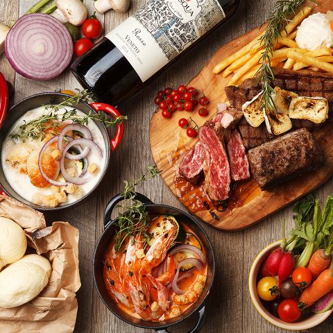 アクアリウム個室で奏でるシェフこだわりの料理の数々☆選べる4種のつけパンシチューや豪快な肉プレートは自慢の一品♪名物料理が楽しめる3H飲み放題付コースは、合コン・誕生日・女子会など、プライベートなシーンにおすすめ!3500円~ご用意しています!