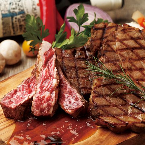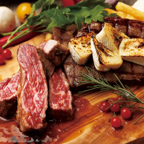当店名物!Beef & Pork PLATEは、肉好きのための極上の一品♪肉プレート含む飲み放題付コースもご用意!