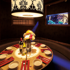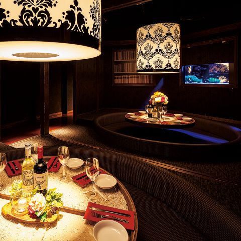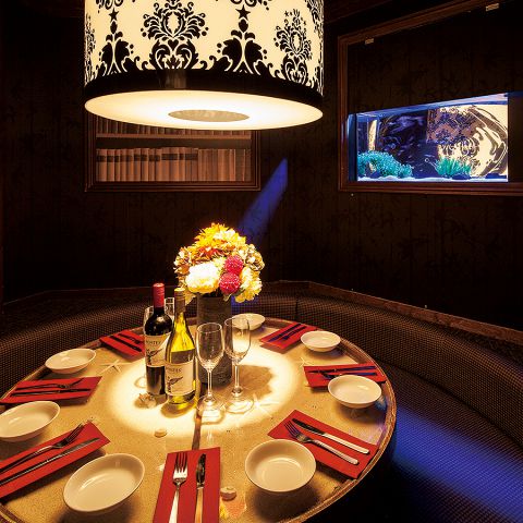 照明が照らす華やかなアクアリウム完備の円卓個室は最大8名様収容可能★おしゃれ女子会・誕生日/記念日・合コン・大切な仲間との飲み会に◎(最大8名様収容可能)