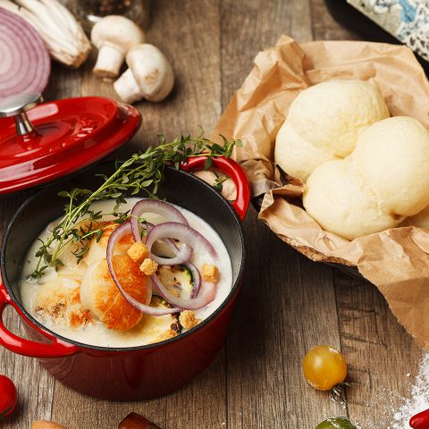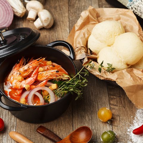 女性に大人気★貝の風味たっぷりのクラムチャウダーをつけパンシチューでどうぞ!