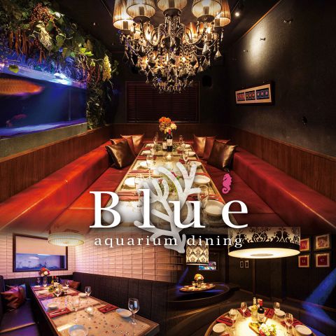 広々としたソファ個室はアクアリウム完備の幻想空間♪ おしゃれ女子会・誕生日/記念日・合コン・大切な仲間との飲み会に◎日常から離れた”BLUE”の空間で忘れられないひと時をおつくり下さい♪(最大8名様収容可能)