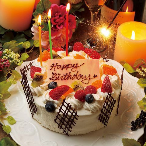 パティシエ特製ホールケーキもご用意可能★パティシエが作るホールケーキは甘さ控えめでたくさん食べれちゃう♪蒼く輝く水槽個室で熱帯魚を眺めながら極上プライベートタイムを★プリンセスケーキも大好評です!