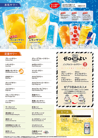 | お酒 | カクテル充実、焼酎充実、日本酒充実、ワイン充実 |
