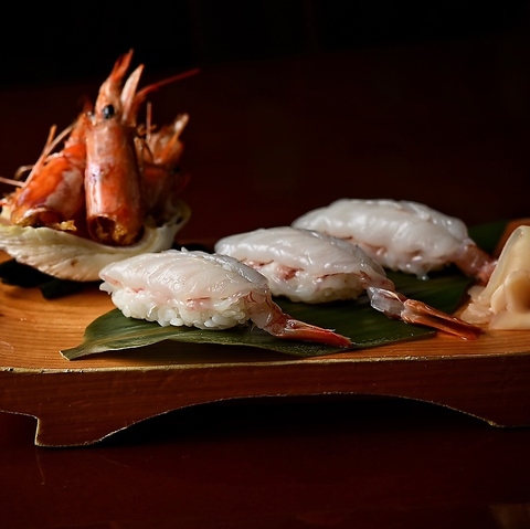 ぷりぷりとした身に、ほんのり甘みが広がる久米島産の車えび。握り寿司として口に運べば、海の恵みが舌の上でとろけるように広がり、えび本来の旨みがじんわりと染み渡る。艶やかな身は見た目にも美しく、ひと口で南国の海の豊かさを感じさせてくれる逸品です。