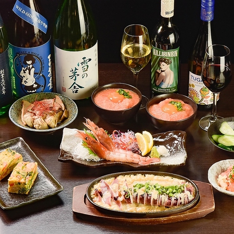 海老を存分に楽しむ!刺身食比べ・酔っぱらい海老・海老しゃぶ料理長が自ら築地に通い、仕入れを行っているからできるかいりならではの海老のバラエティー!豪快に酔い暴れる新名物【暴れ車海老】【天使のえび】などとにかく海老尽くしメニューあります!