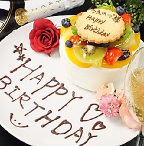 特別な日を演出するために、ホールケーキ付きの記念日お祝いコースをご用意しております。誕生日や記念日、歓送迎会など、大切なイベントにぴったりです。特別な別な日を彩るために、温かいサービスとおもてなしを提供いたします。ぜひ、大切な人との思い出に残る素敵なひとときをお過ごしください。