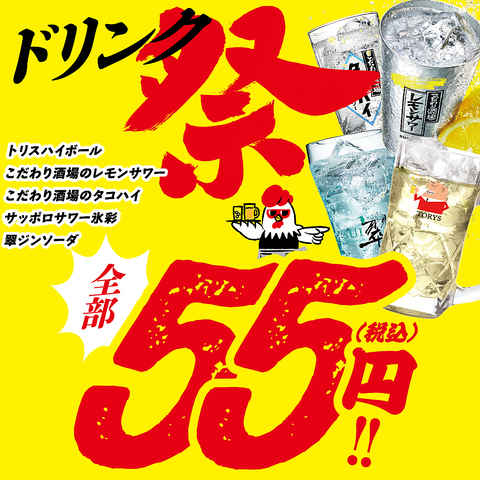<ドリンク全品55円!!>クーポンご利用で、ハッピアワー◎18時までのご来店ドリンク全品55円に!!ごろごろサワーやオリジナルカクテル、お酒が苦手な方にもMOCKTAIL(ノンアルコールカクテル)もご用意♪◆各種ご宴会・飲み会に◎詳しくはクーポンページをチェック◎