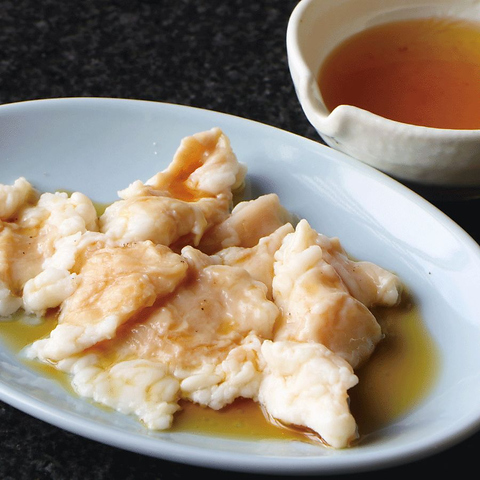 和牛の中でも日本三大和牛の近江牛を使用。数ある和牛の食べくらべをしたうえで選んだおすすめのシマチョウです。あらいだしにくぐらせてどうぞ!