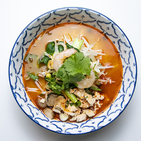 【Soup noodles/スープ麺】(クィッティアオ・トムヤムクン/Tom Yum Noodles)辛さの中の酸味と旨みがクセになるオリジナルトムヤムペーストが秘伝の味!※麺の種類が選べます