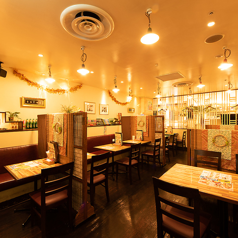 【広々空間】店内を賑やかに飾る調度品はタイから直接仕入れたこだわりの内装です。タイの雰囲気が溢れるカジュアルな店内で、本場の味をじっくりご堪能ください。