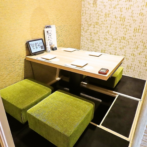 【4名様向き個室】完全個室なので合コン利用にも◎掘りごたつつきの完全個室のお席です。中人数向きの個室席なら、会社でのお集まりや合コン、お仲間内での飲み会、女子会などに好評です。履物を脱いでゆっくり足を休められるお席は女性にも好評です。
