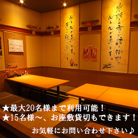 会社の宴会・同窓会に嬉しい最大20名様まで宴会OK!コース料理も多数ご用意しておりますのでどんなシーンも選びません♪お席等、お気軽に店舗へお問合せ下さい。