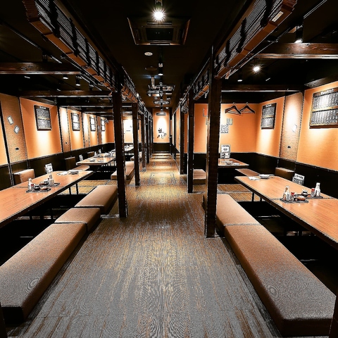 大人数での宴会に最適な居酒屋として、広々としたテーブル席をご用意。飲み放題付きコースも充実しており、個室の利用も可能です。設備や環境が整っているので、幹事様が安心してご予約いただけます。