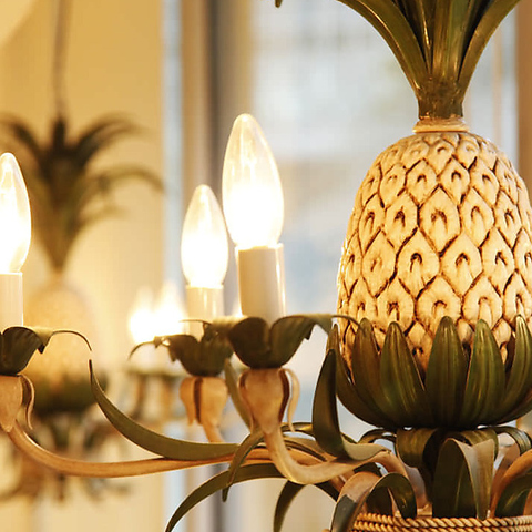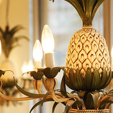 可愛いパイナップルのシャンデリアもあり、南国気分が味わえる!