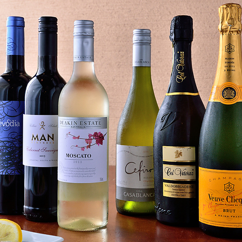 赤・白・スパークリングワインはもちろん、お祝いに定番なシャンパンもご用意!女子会にもおすすめです♪