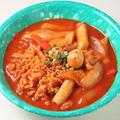 【辛さ★★★★☆】韓国屋台の定番メニュー!トッポッキとラーメンを一緒に煮込んだ人気の韓国料理です。もちもちのトックとコシのある麺が、甘辛いコチュジャンソースに絡み、ボリューム満点!辛さと旨さがクセになる一品です。【Spiciness ★★★★☆】A classic Korean street food! Chewy rice cakes and firm noodles simmered in a sweet and spicy gochujang sauce, creating a hearty and irresistible dish!
