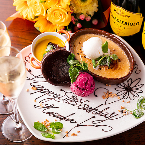 特別な日を特製プレートでお祝いします!ご予約時にメッセージの内容をお伝えください!
