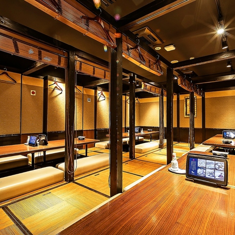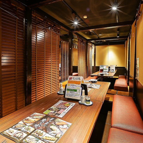 大人数での宴会に最適な居酒屋として、広々としたテーブル席をご用意。飲み放題付きコースも充実しており、個室の利用も可能です。設備や環境が整っているので、幹事様が安心してご予約いただけます。