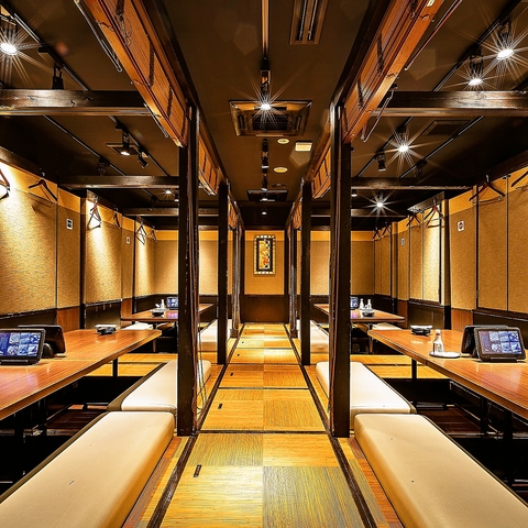 大人数での宴会に最適な居酒屋として、広々としたテーブル席をご用意。飲み放題付きコースも充実しており、個室の利用も可能です。設備や環境が整っているので、幹事様が安心してご予約いただけます。