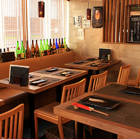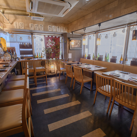清潔感がある綺麗な店内。女性でも気軽に入れる雰囲気です。木の温もりにも溢れ、居心地も◎会社帰りにふらっとお立ち寄りいただけて、ゆったりとお過ごしいただけます。お酒の瓶がずらりと立ち並ぶカウンター席は、一人で楽しみたい方に◎