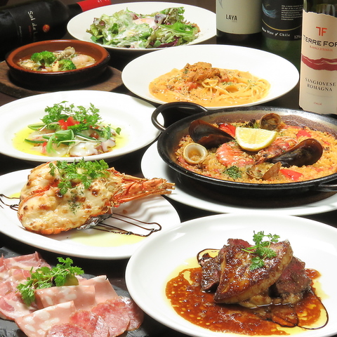 大人気の5000円の★海の幸コース★会社宴会や歓送迎会などグループでのご利用にピッタリ!パエリアはパスタへの変更も可能です!自慢のコースをどうぞ♪
