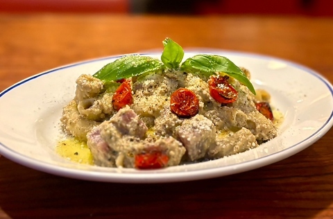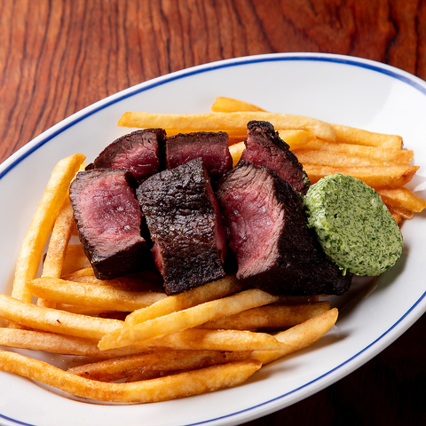 ビステッカは高温の油で揚げ焼きしながら一気に仕上げます。外側は焦げる直前までガリっと焼き、中はレアレアでしっとり。脂が少ない部分なので、実はさっぱり食べられるのです。イタリアで食べられるステーキです。100g/1750円、不定貫。ご注文頂いてから、重量確認します。