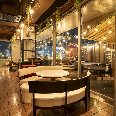 夜景を眺めるテラス席は、季節問わず人気のお席。テラス貸切などもご相談下さい。