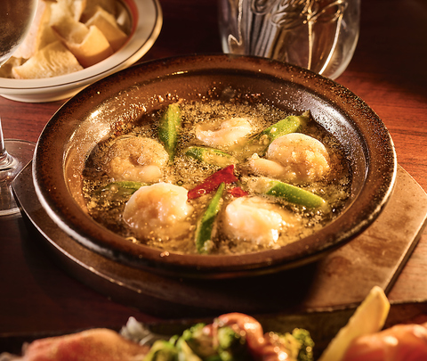 素材の旨みをオイルに閉じ込めた、海老とオクラのアヒージョ