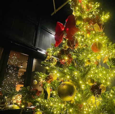 KOiBUMiの中庭には毎年3.5mの巨大ツリーが出現!落ち着いた店内で特別な夜をお過ごしください。