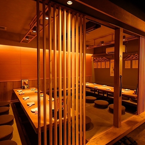 足をゆったり延ばせる掘りごたつ席は最大24名様まで利用可能。人数によって仕切ることも出来ますので、お気軽にご相談下さい。店内は最大63名の宴会もOK!会社宴会などの各種宴会におすすめです。ご予約はお早目に♪